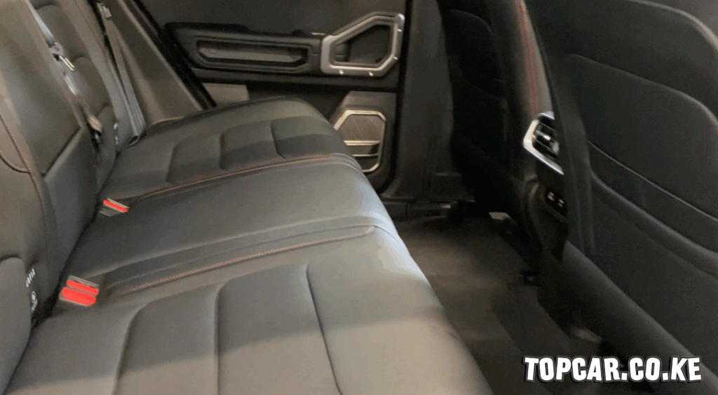 The 2025 Jetour T2 has a well-appointed interior. With a seating arrangement for five, each row has plenty of legroom and headroom. The seats are upholstered in leather. The red stitching adds a distinctive look. The seats are power-adjustable and feature a heating and ventilation function.